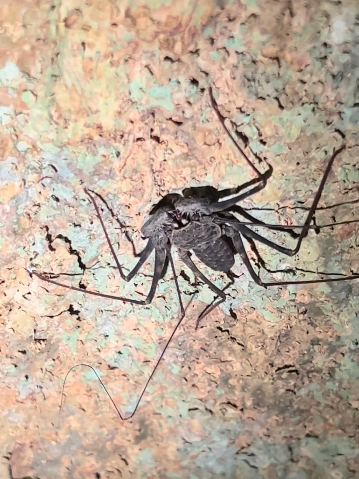 Whip spiders (Amblypygi) are harmless, ancient arachnids with long sensory legs and strong predatory appendages, commonly found in tropical regions.