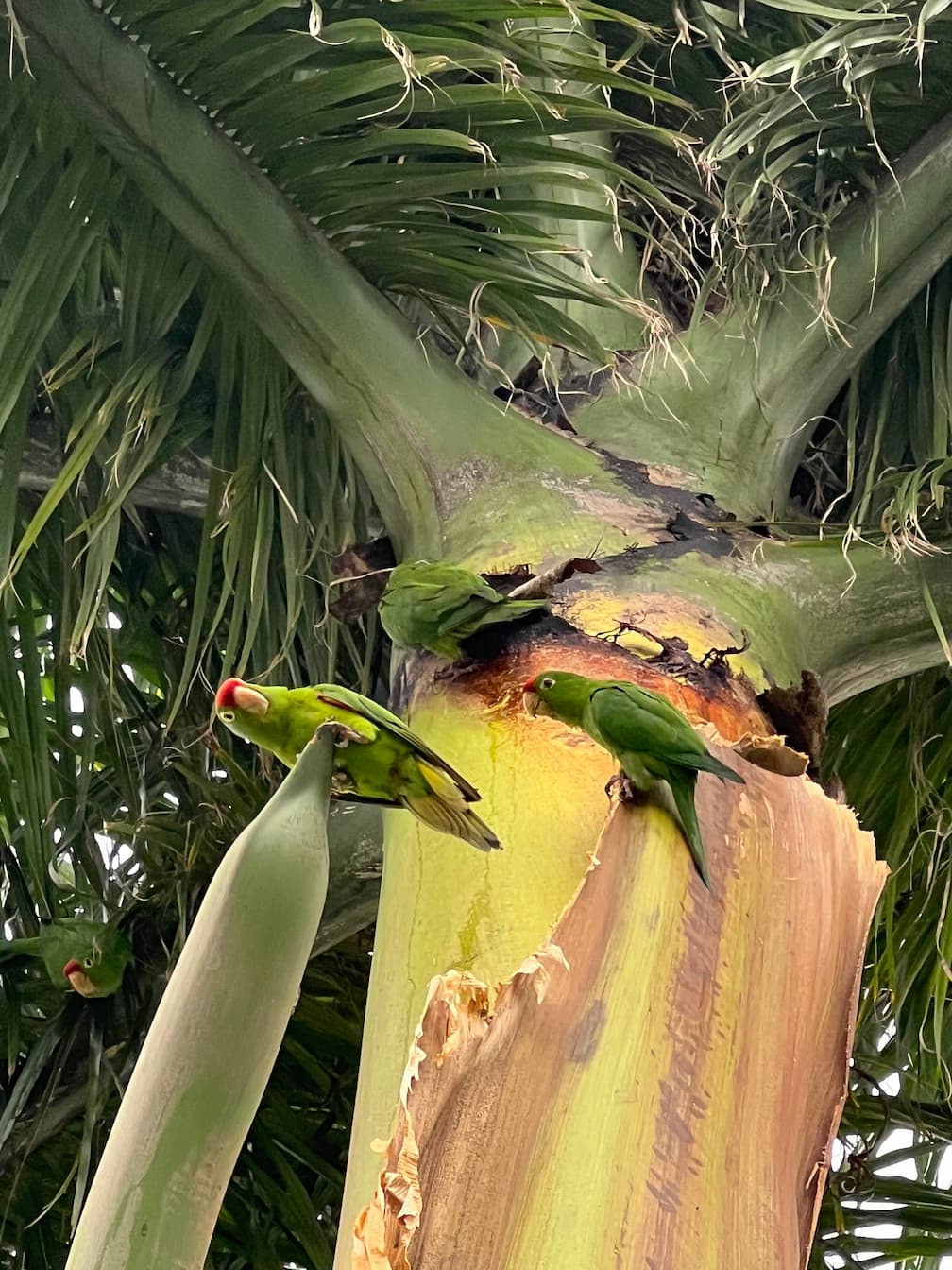 Large flocks of Finsch’s Parakeets often roost together at sunset, filling the sky with loud calls — one of the most iconic natural sounds of Costa Rica’s Pacific lowlands. Parakeets are highly intelligent birds, capable of problem-solving, social learning, and vocal communication.