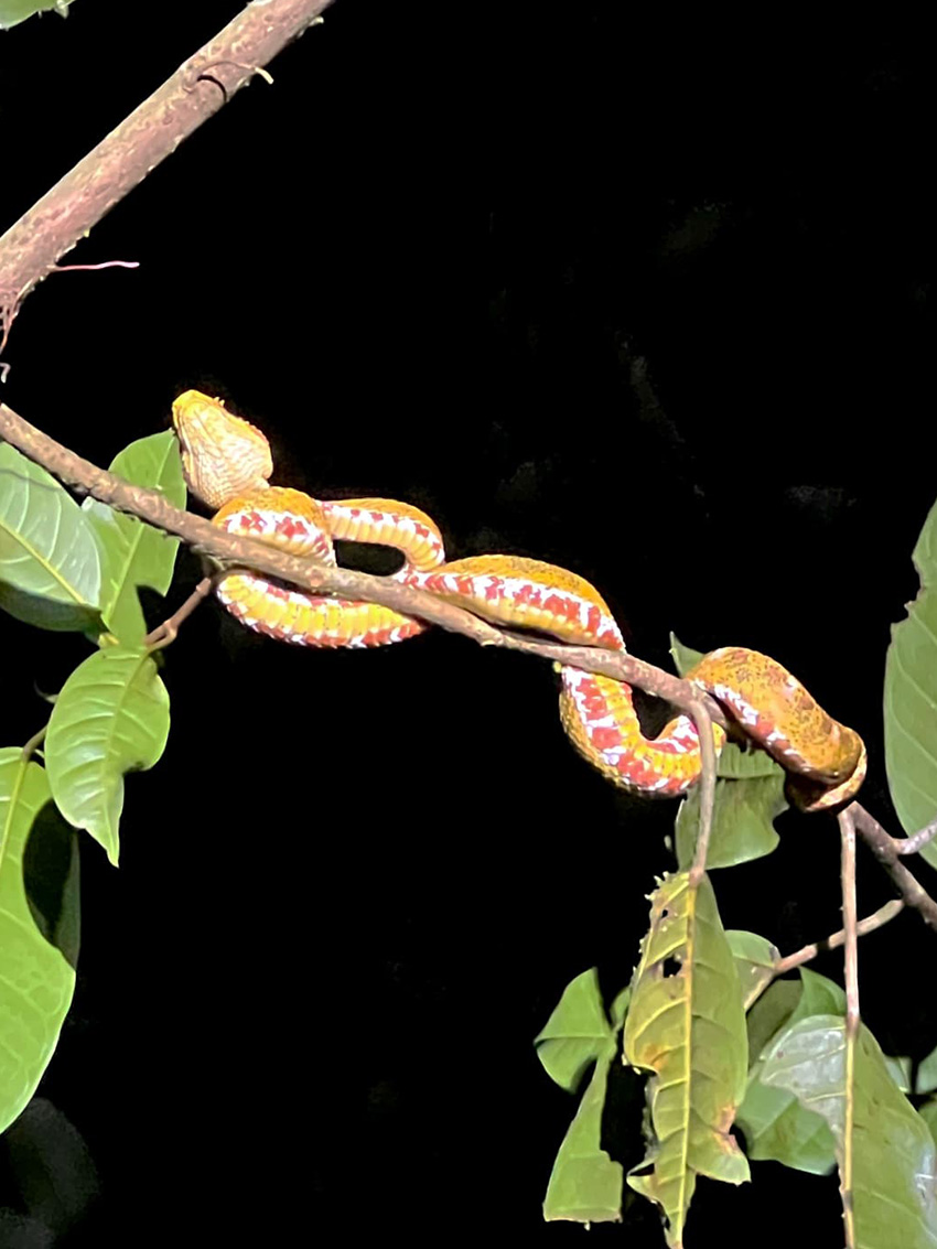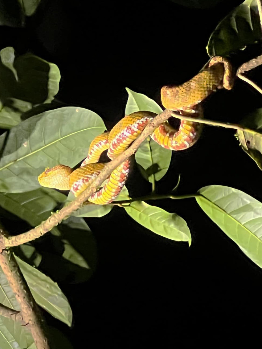 ⚠️Advice: 🌿 When walking in the rainforest at night, never grab branches with bare hands, especially at chest or face level. These snakes don’t hiss or flee — they rely entirely on camouflage. You might be inches away without noticing.